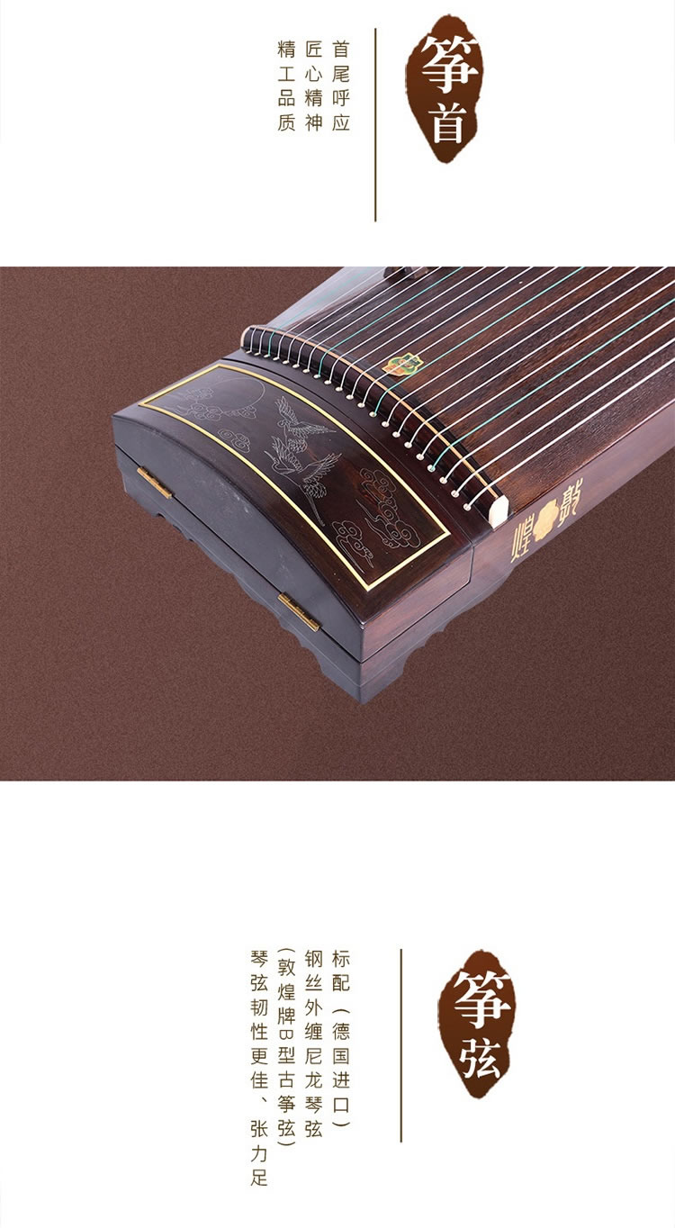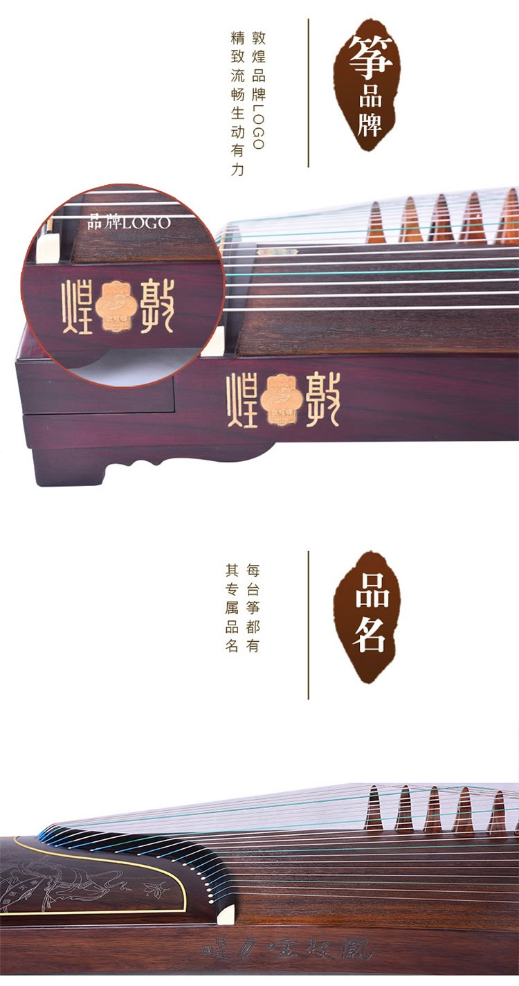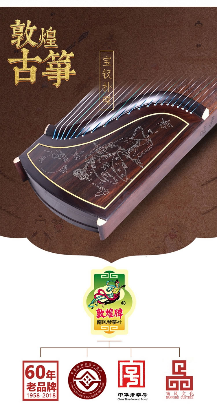 商品名称:敦煌牌古筝 695J凤枝吟月 宝钗扑蝶 特选印尼黑酸木