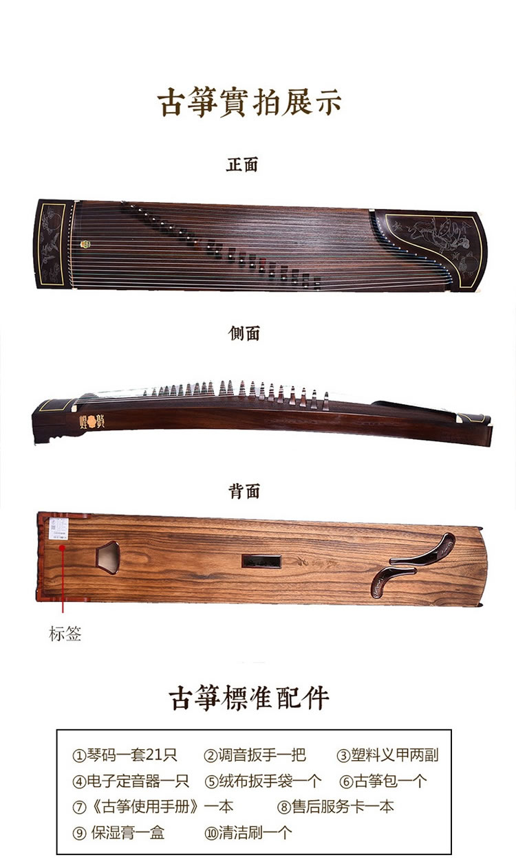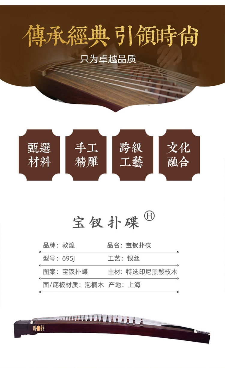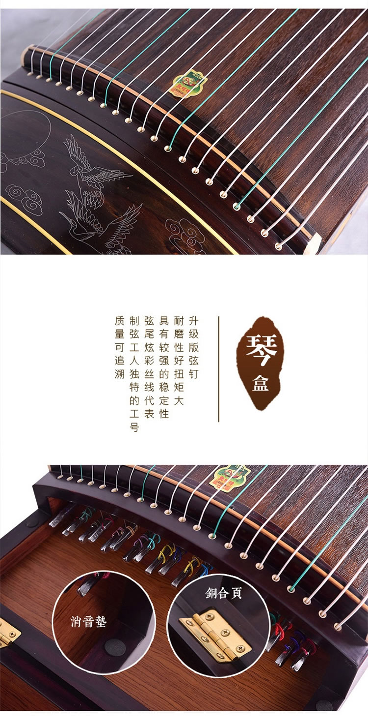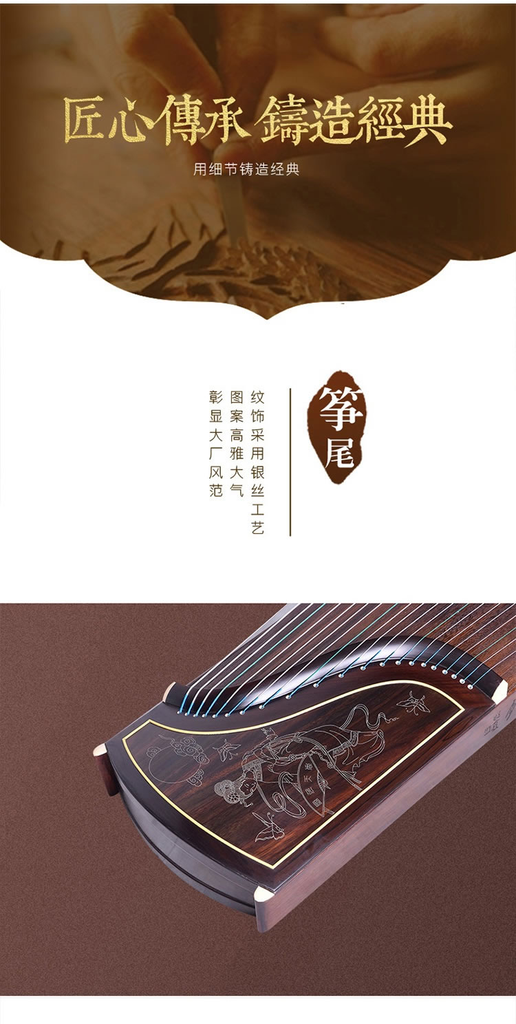 商品名称:敦煌牌古筝 695J凤枝吟月 宝钗扑蝶 特选印尼黑酸木