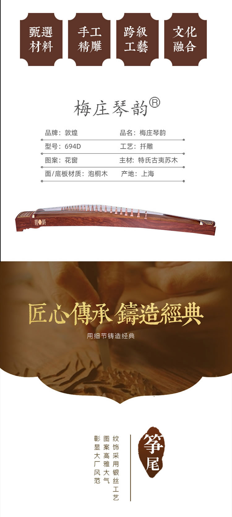 商品名称:敦煌古筝694D梅庄琴韵(窗花)考级演奏古筝