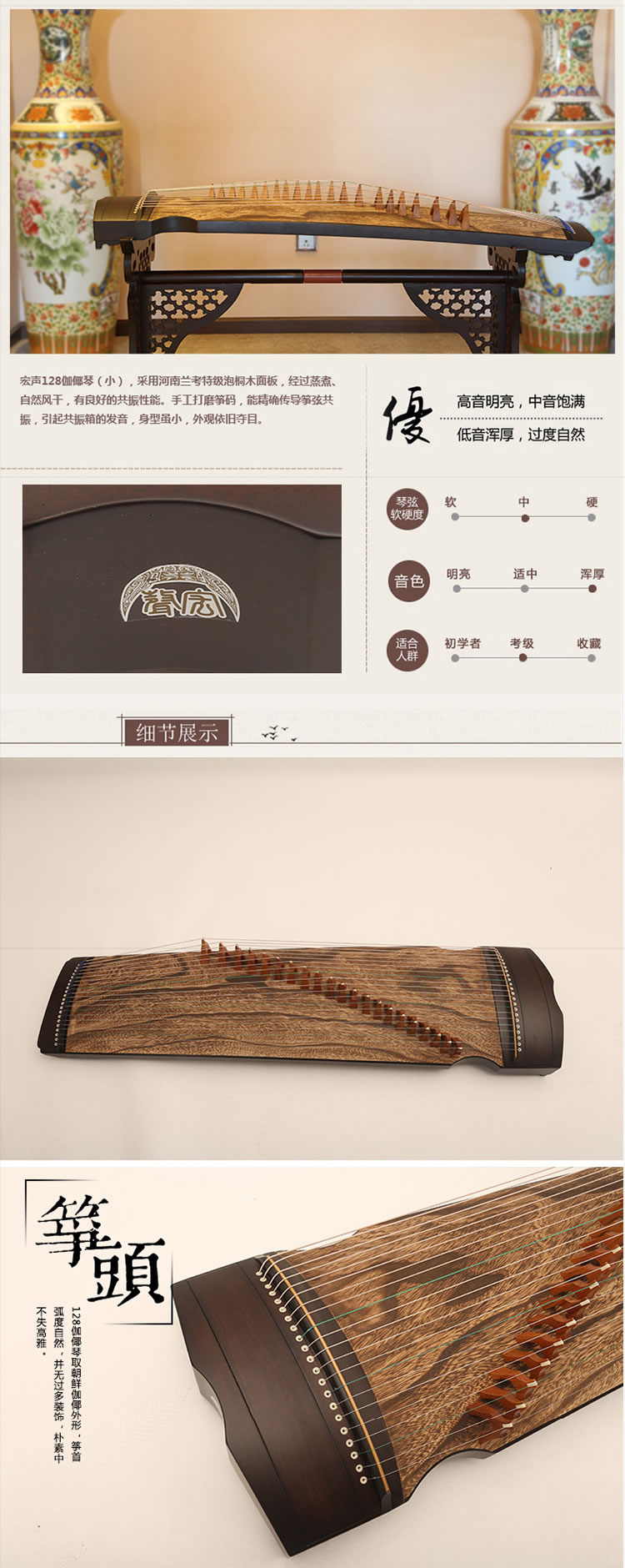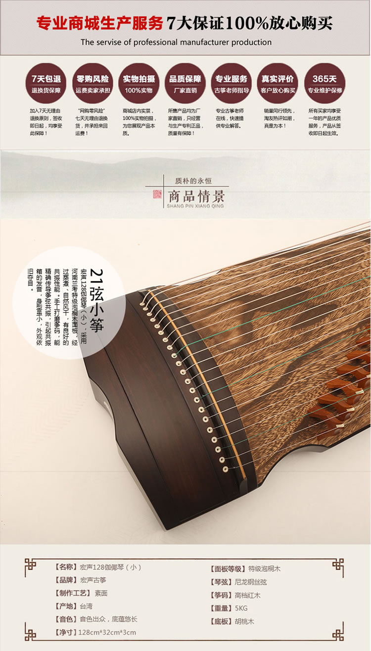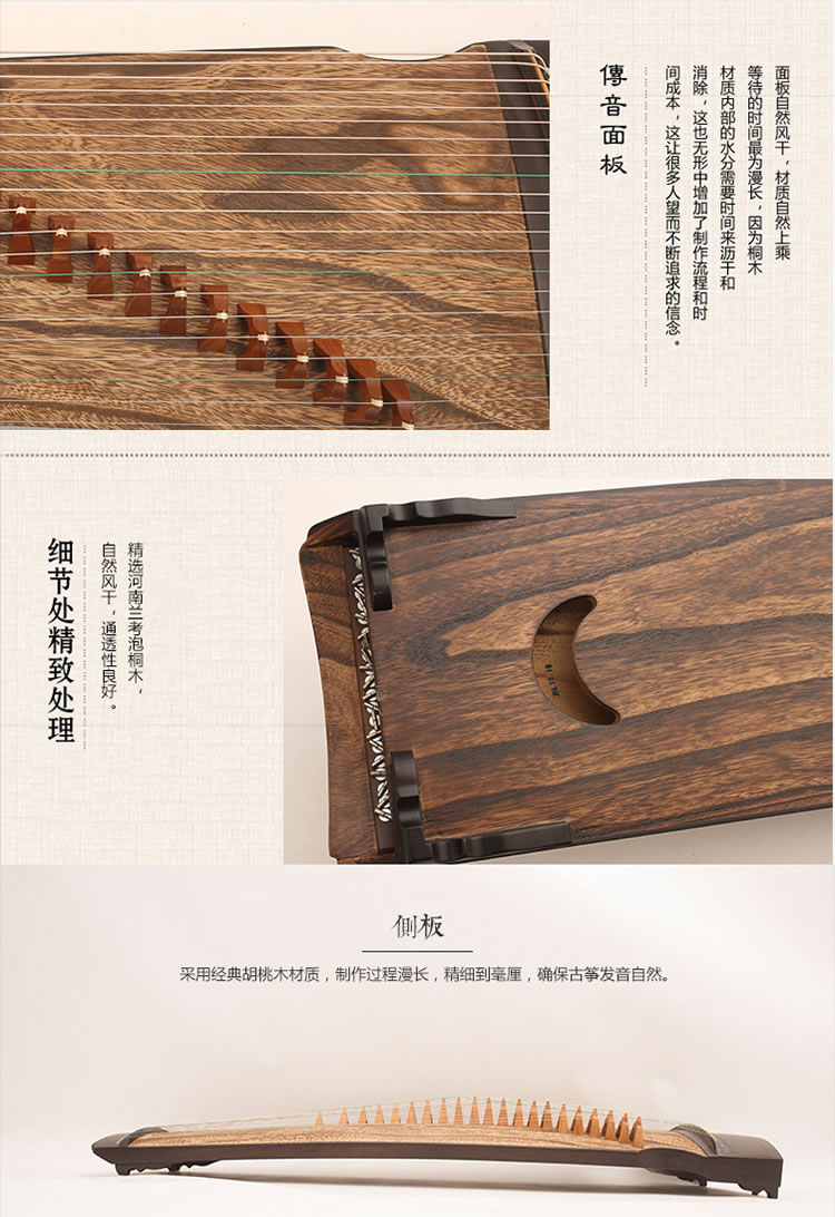 商品名称:台湾宏声古筝128珈瑘胡桃木素面 挖筝 演奏级古筝