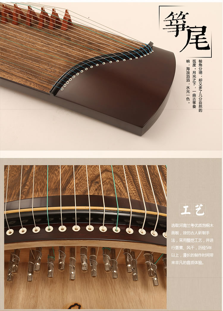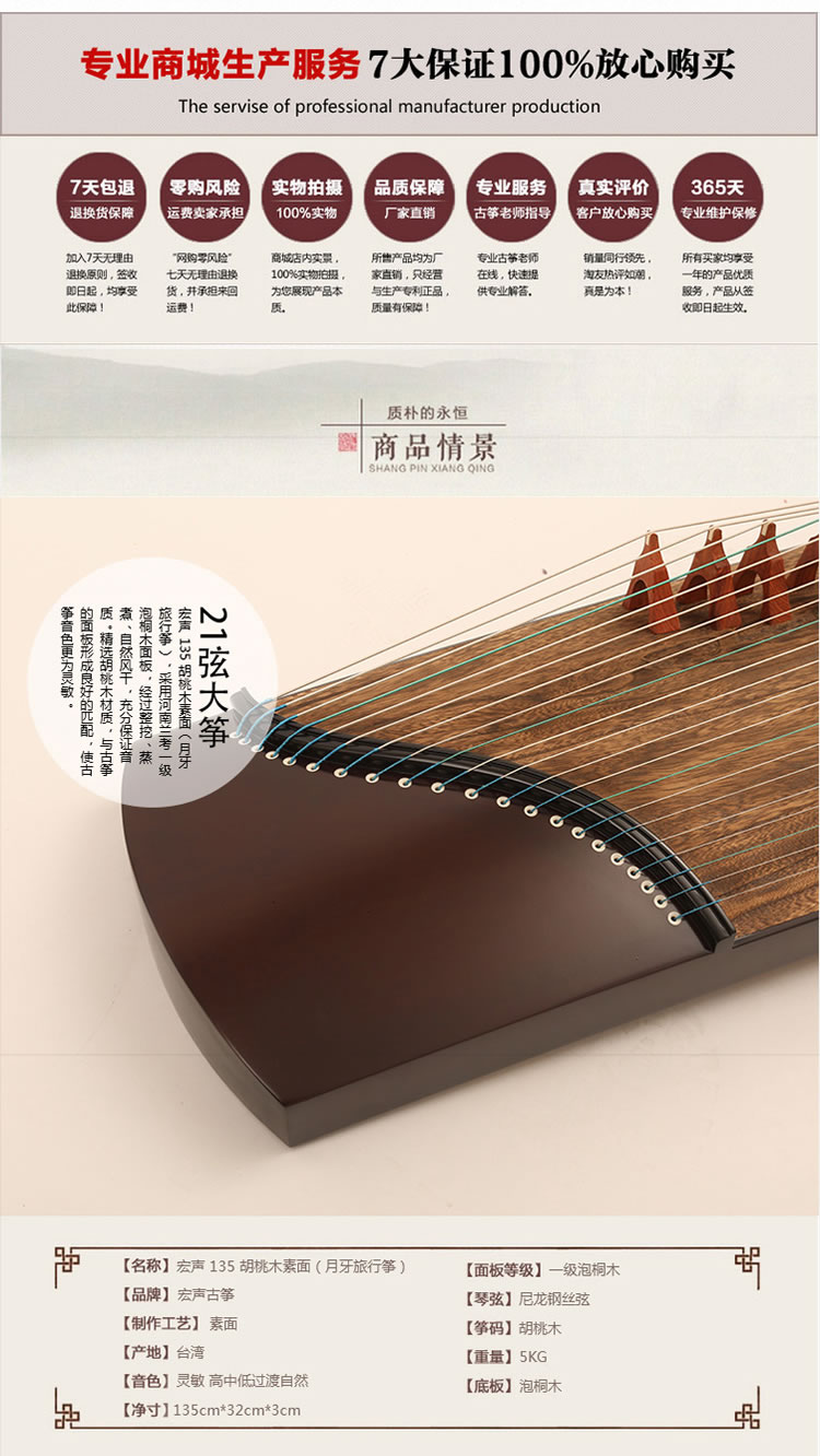 商品名称:宏声古筝135胡桃木素面(月牙旅行筝)挖筝 高端筝 演出筝