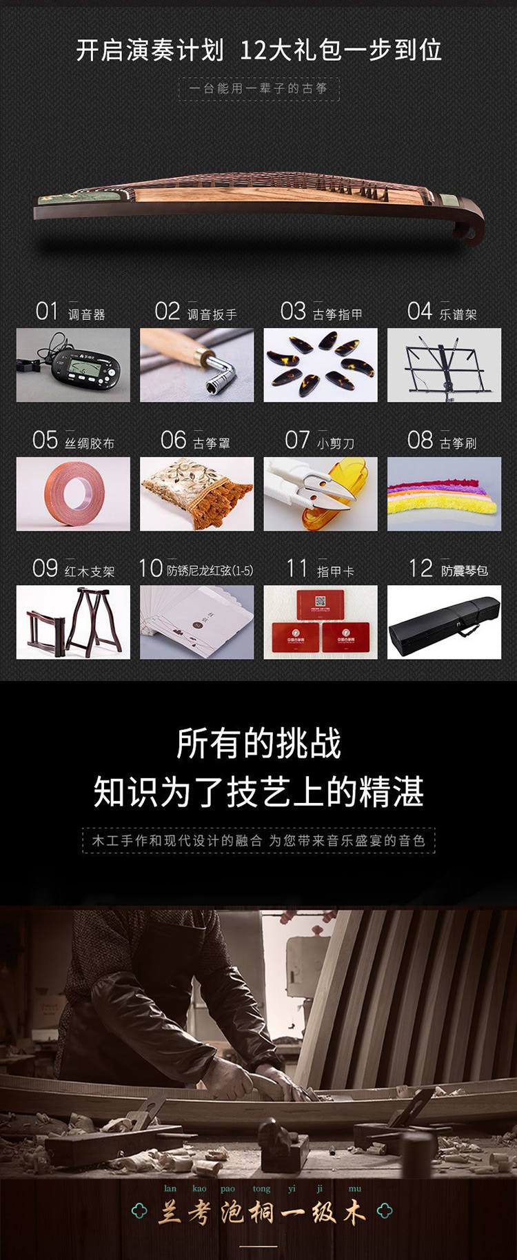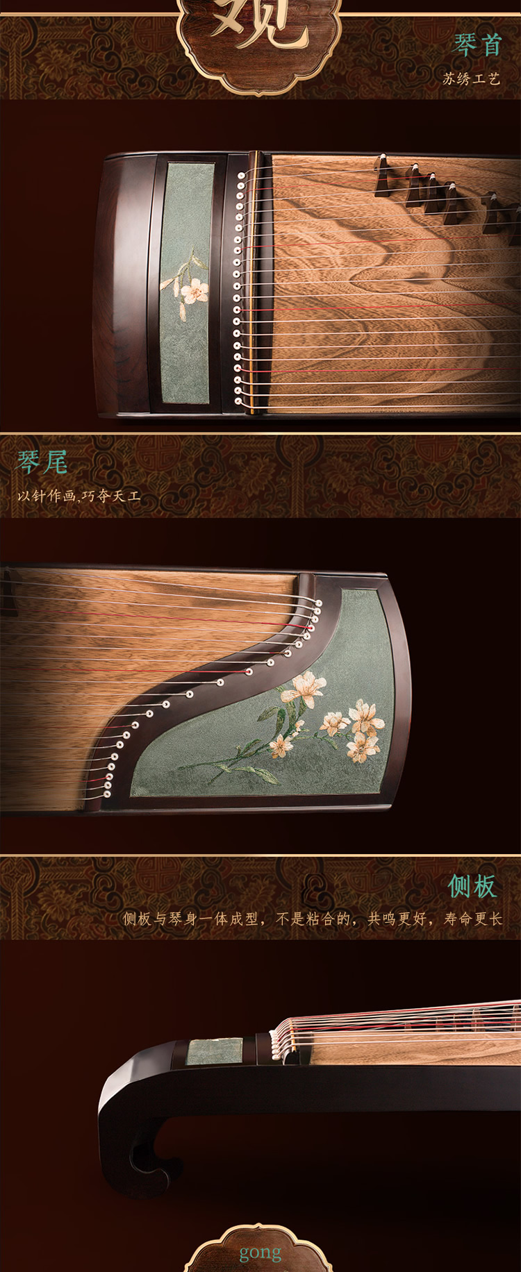 商品名称:鸾鸣挖筝 岁华LM-806专业级古筝百年老榆木苏绣工艺挖筝专业考级演奏收藏级