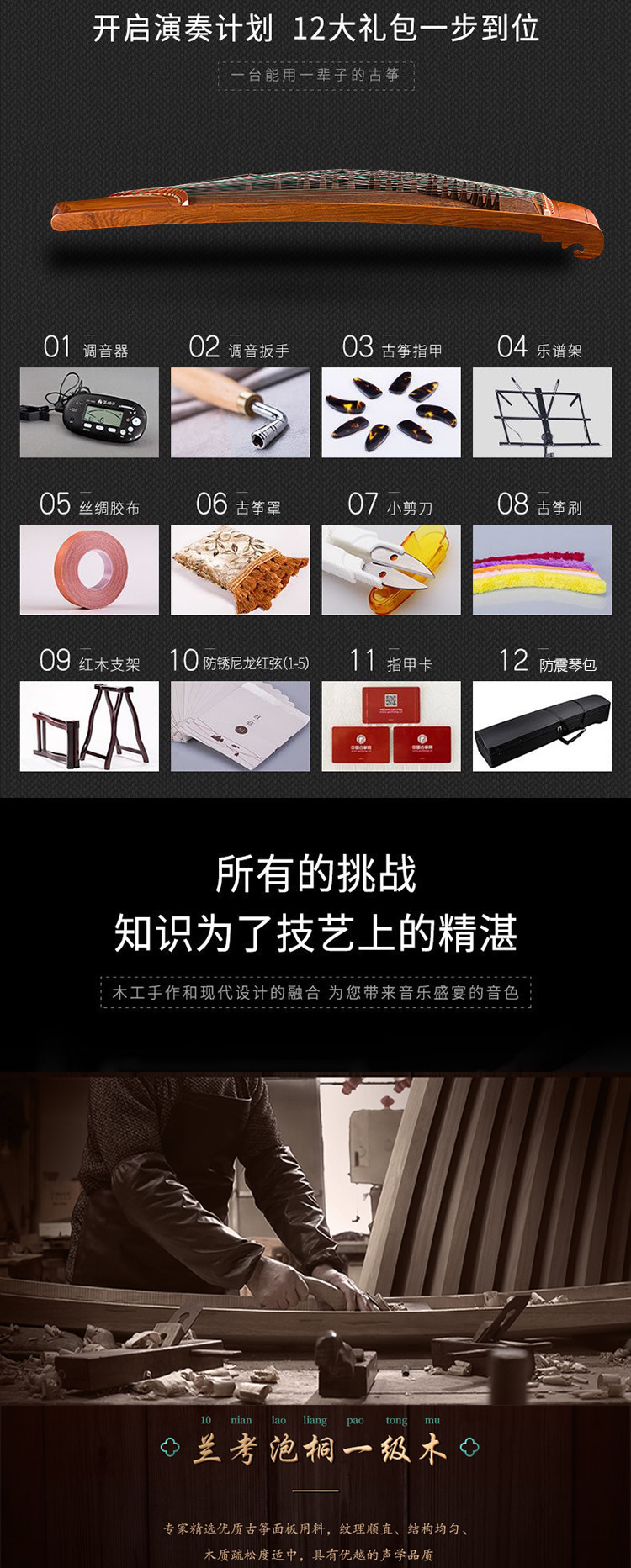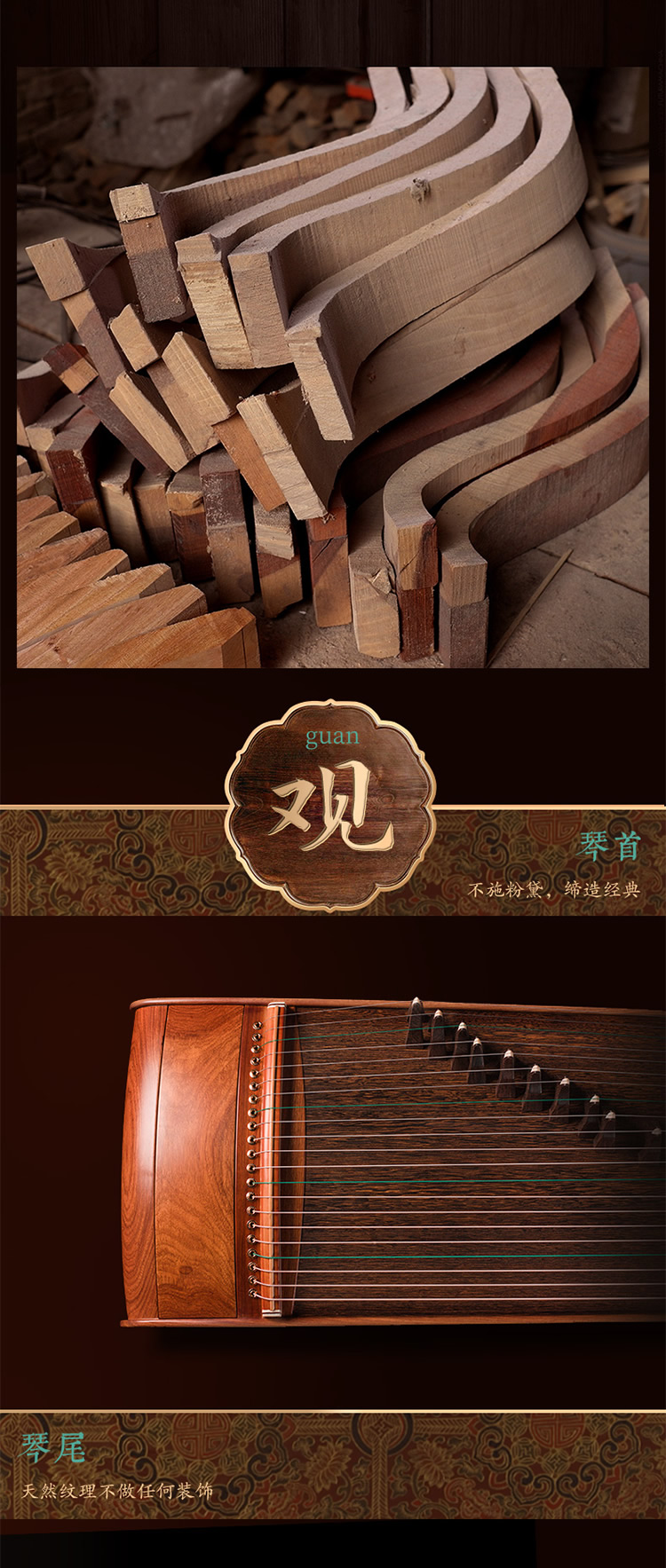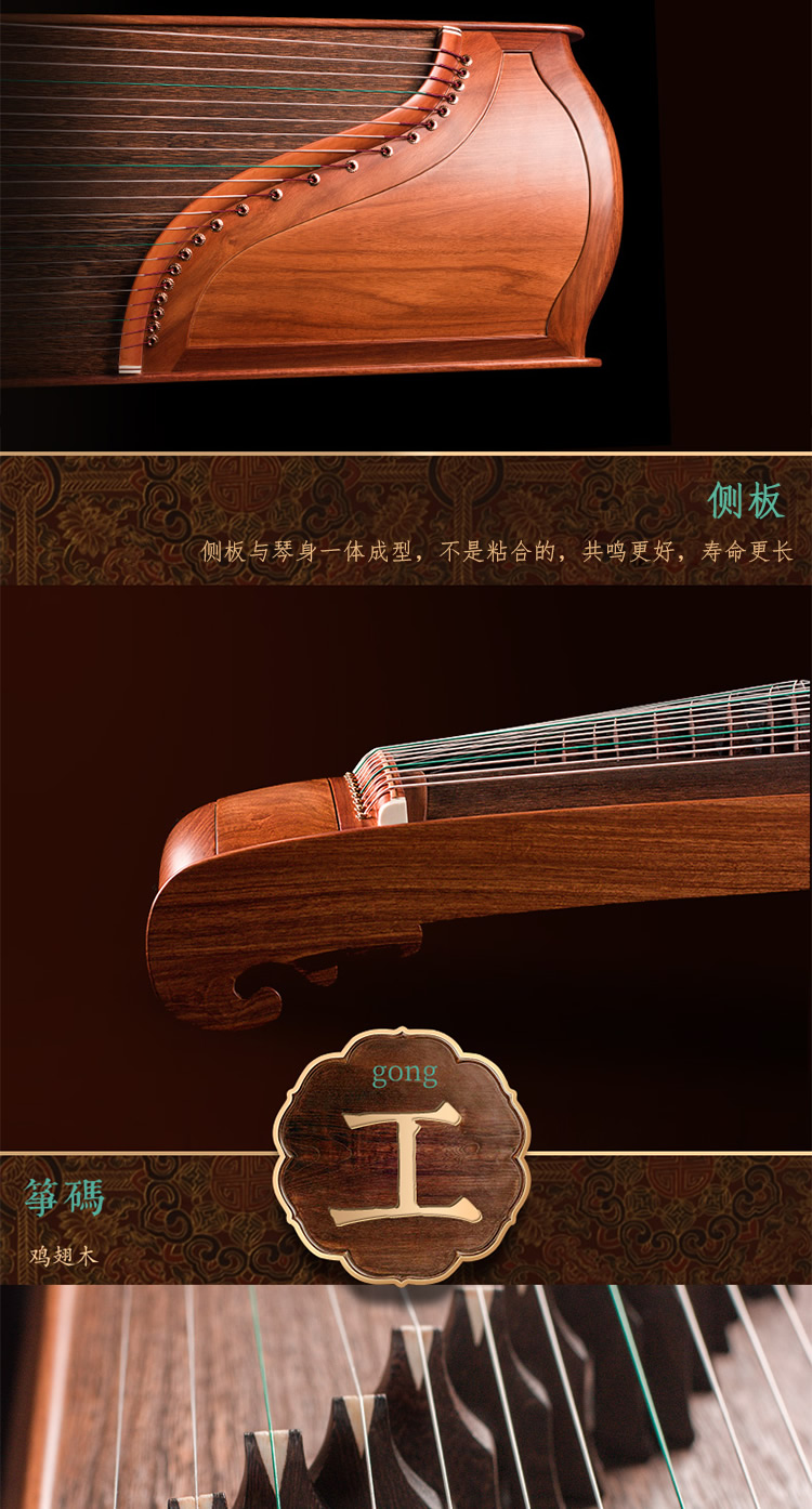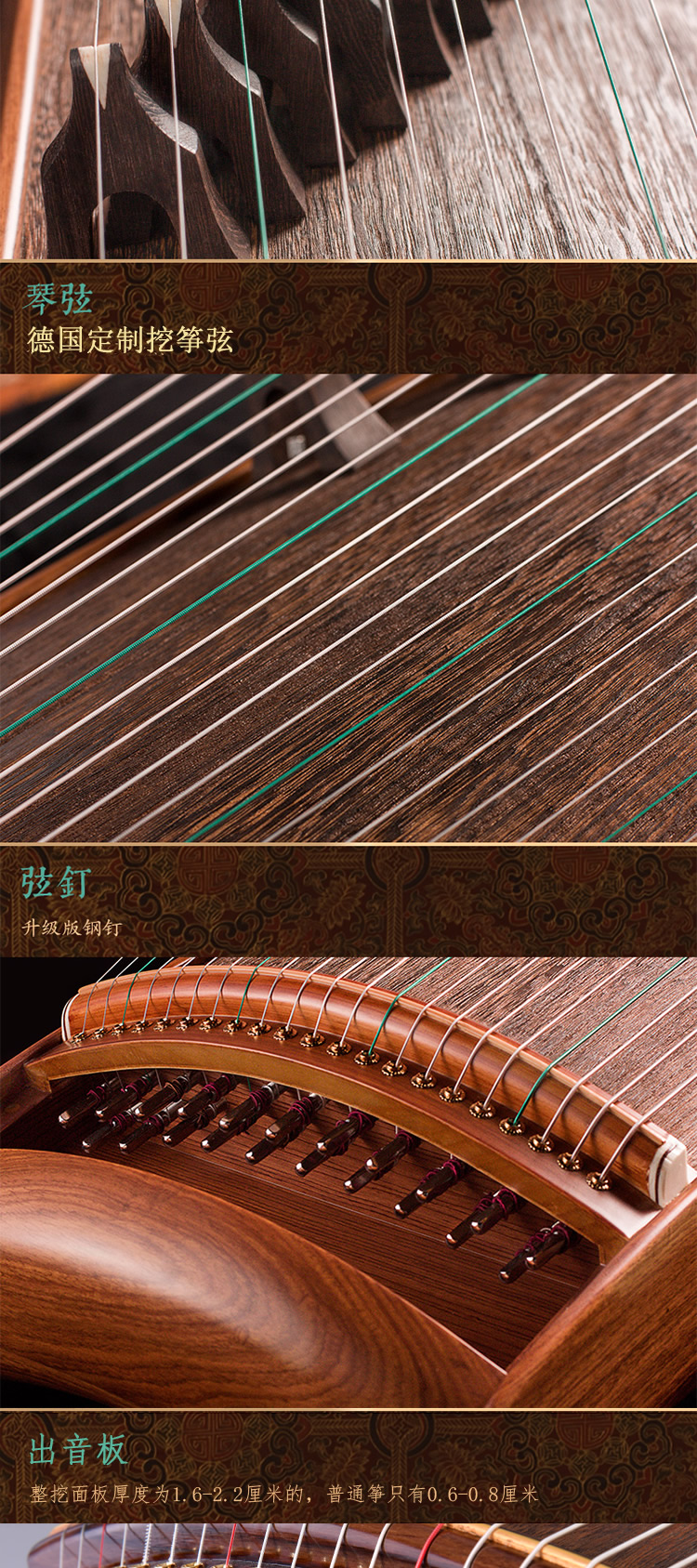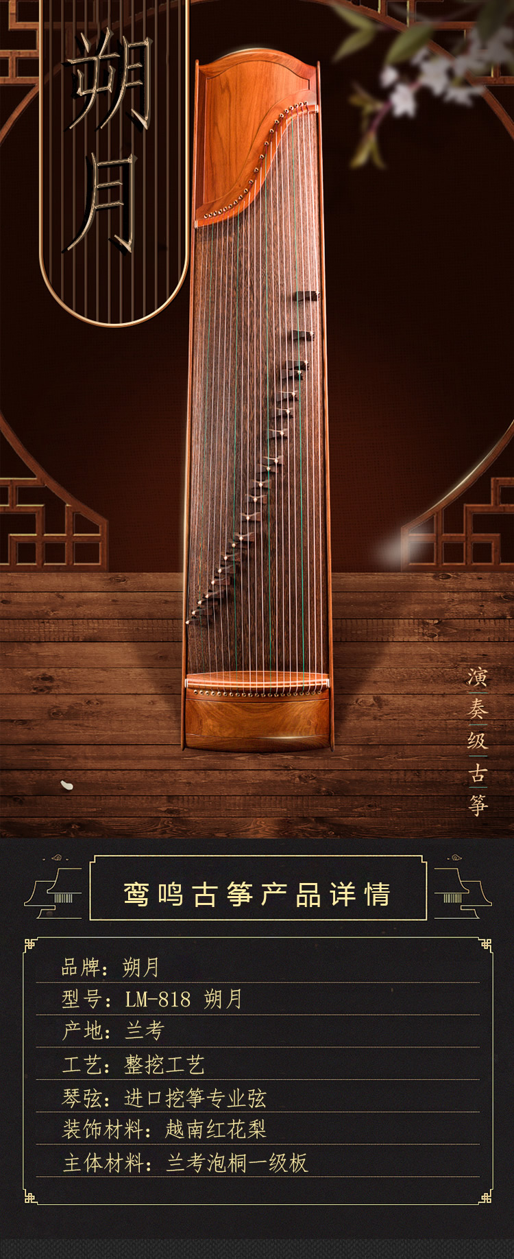 商品名称:鸾鸣挖筝 朔月LM-818 演奏级古筝越南红花梨素面古筝专业考级演奏收藏级古筝