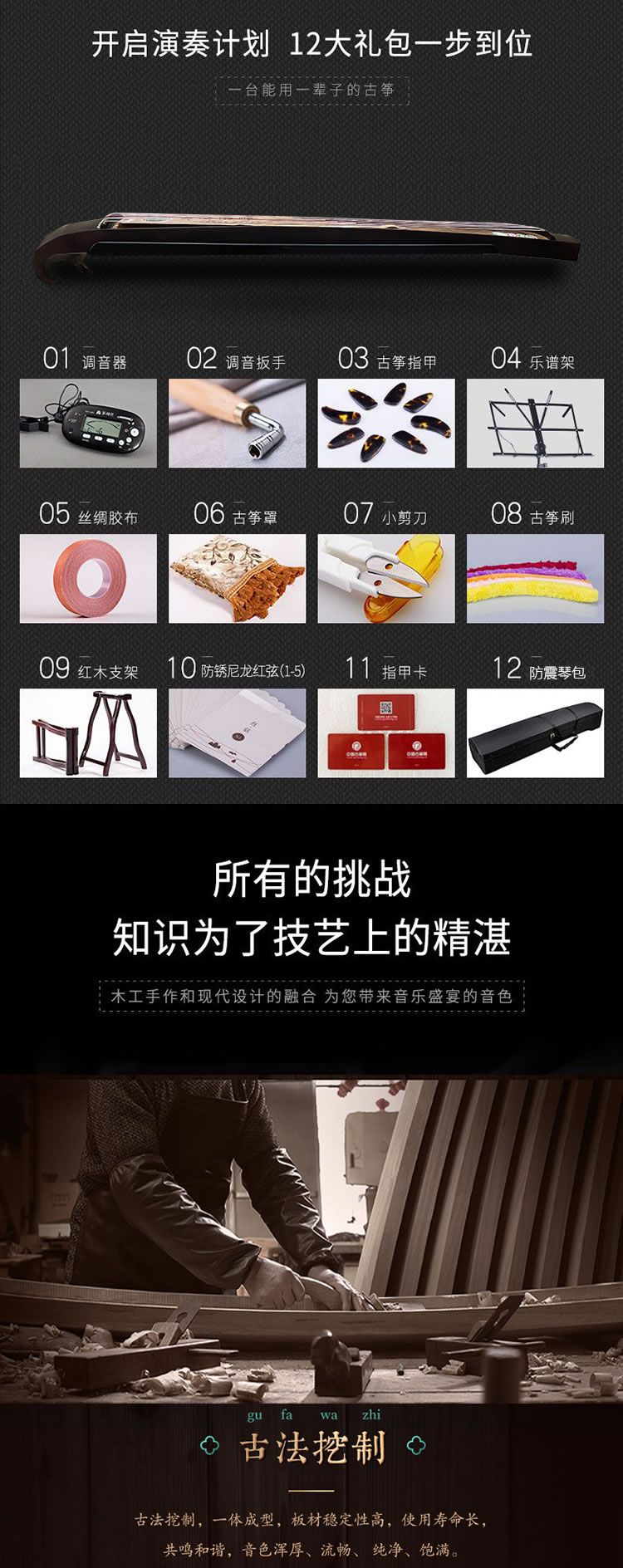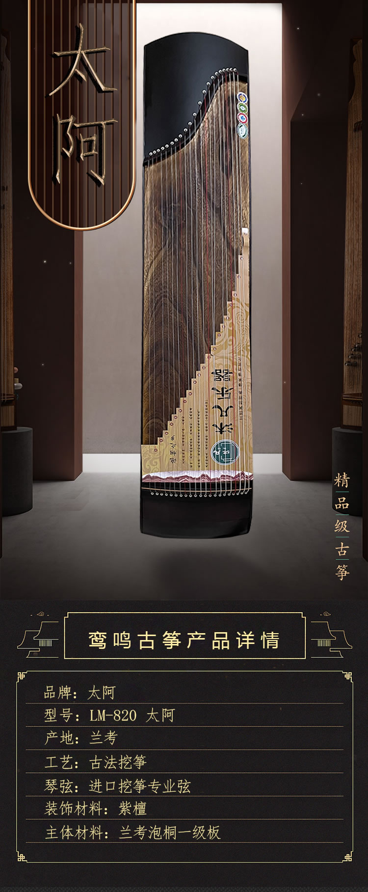 商品名称:鸾鸣挖筝 太阿LM-820收藏级古筝特别版紫檀素面整挖古筝专业考级收藏级